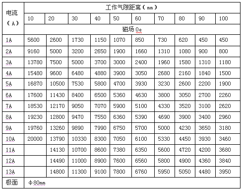 2.3 磁場強度: H≥0.5T,工作氣隙80mm時